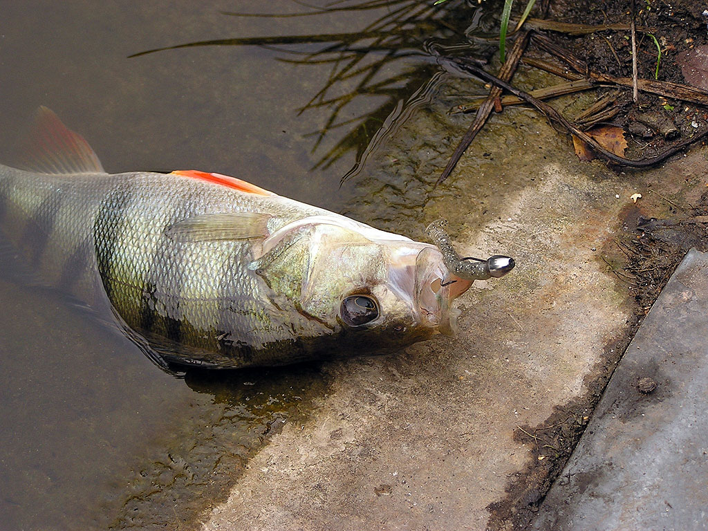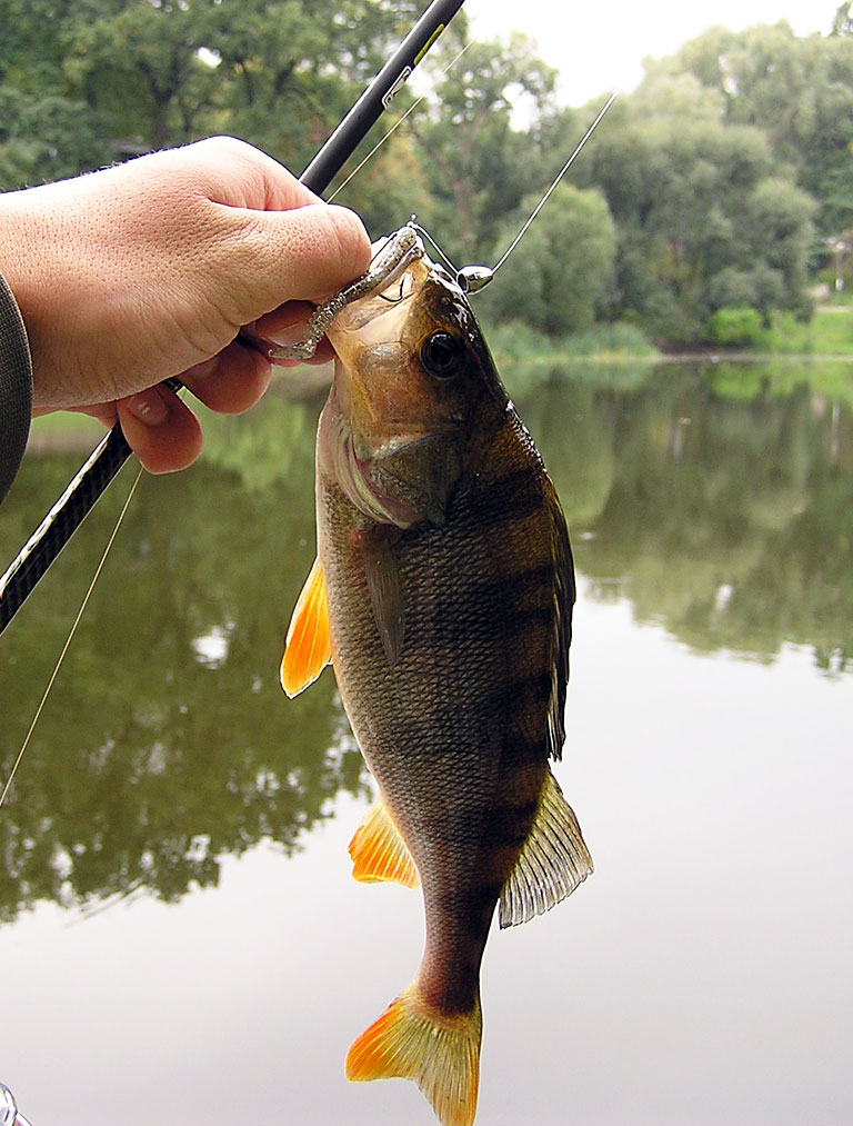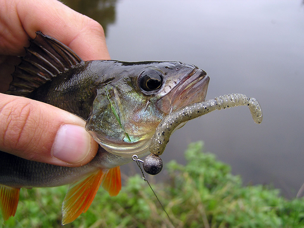 такому вялому окуню. В обычных монтажах, с джиг-головкой и на шарнире,